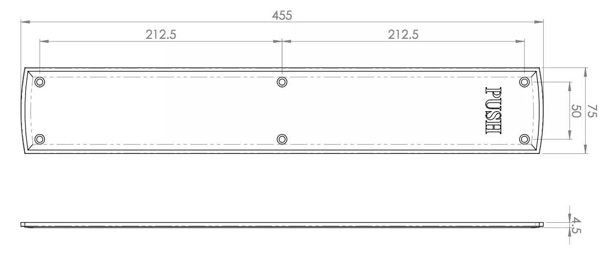 453x75mm Polished Brass Large Push Plate engraved PUSH