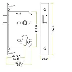 64mm Satin Stainless Steel UK Upright Mortice Latch