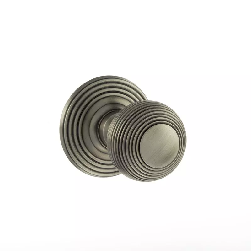 Set Old English Matt Gun Metal Ripon Round Reeded Mortice Knob