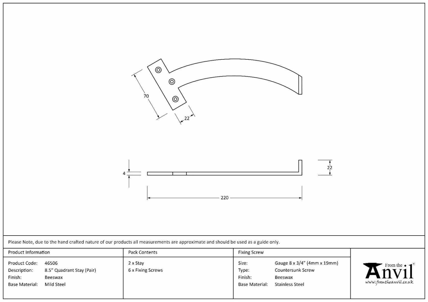 From the Anvil Beeswax 8.5″ Quadrant Stay (Pair) | 46504