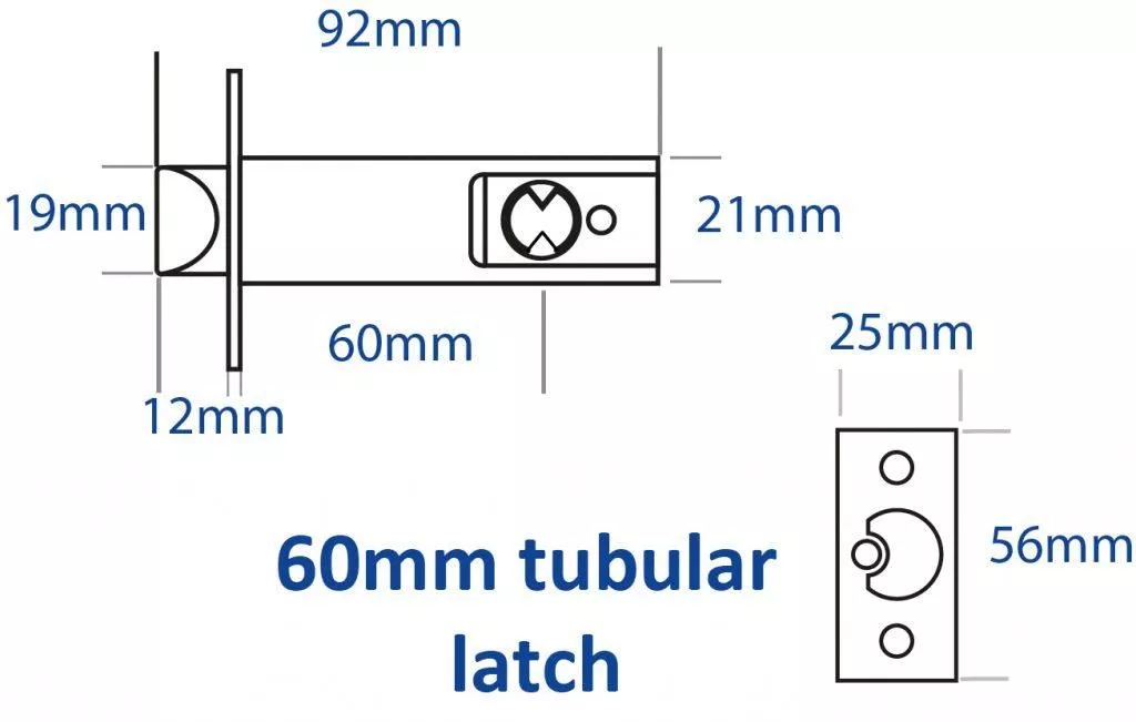 – Anti thrust tubular latch sizes: 50mm, 60mm & 70mm backsets