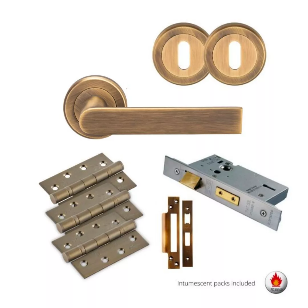 Antique Brass Serozzetta Edge Lever Handle Door Kit – Lock
