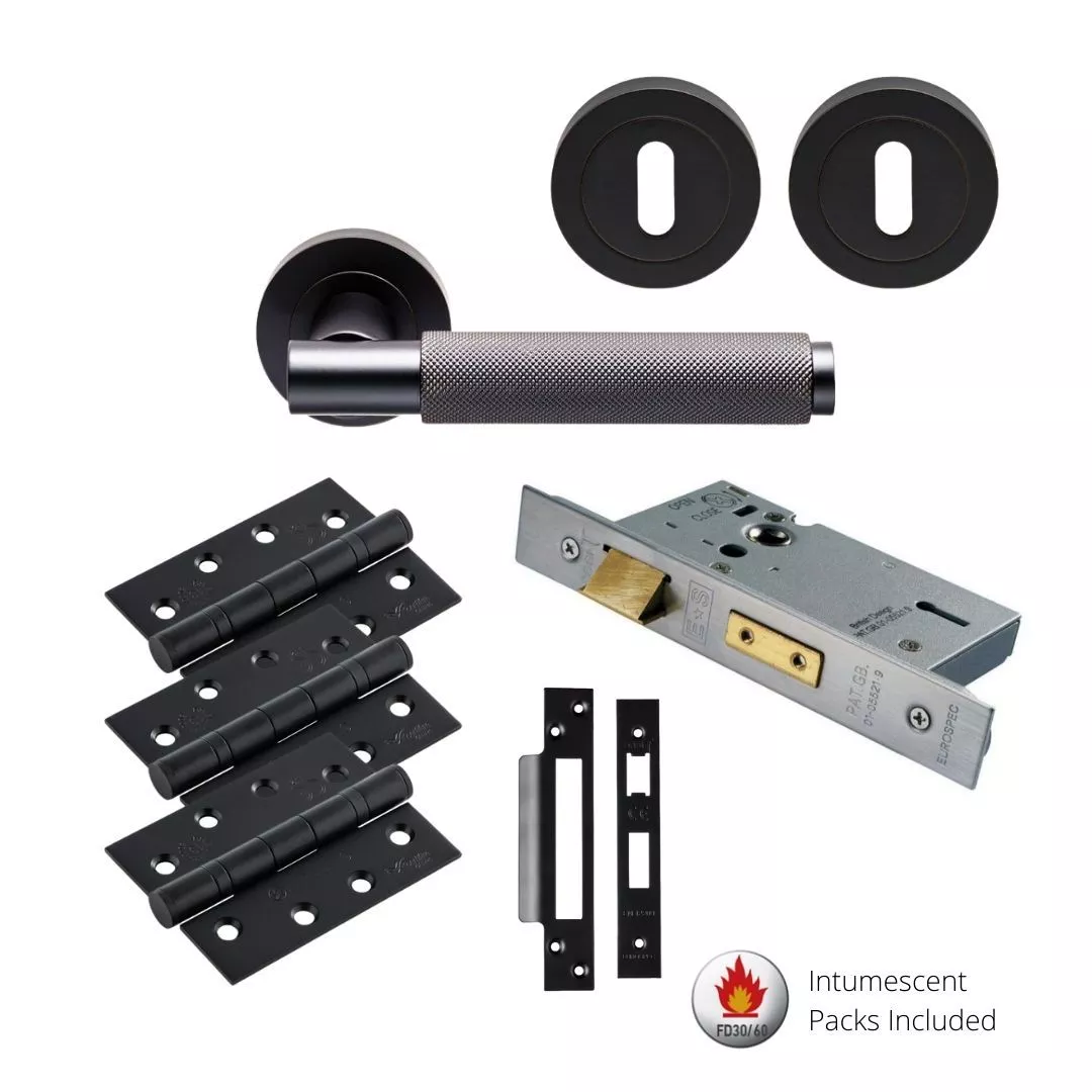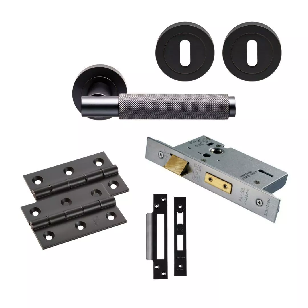 Carlisle Brass Matt Black Varese Knurled Lever Handle Lock Pack – EUL050MBLKP