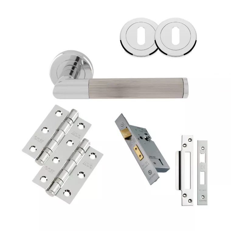 Polished Chrome and Satin Nickel Trend Lines Lever Handle Door Kit – Lock