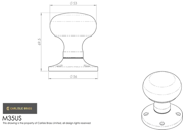 Set Manital Polished Brass 56mm Unsprung Victorian Mushroom Mortice Knob | M35USPB