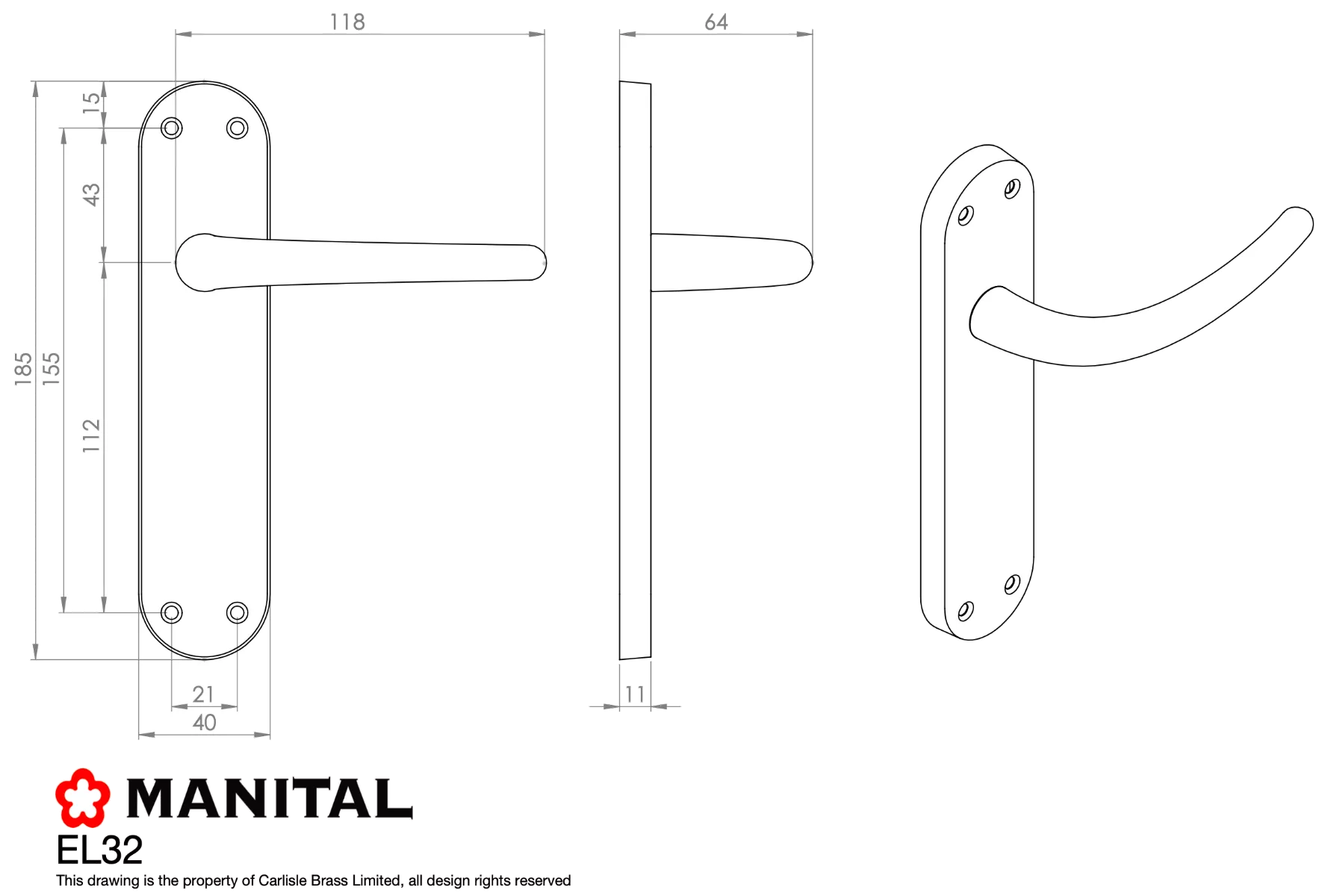 Set Matt Black Manital Lilla Lever Bathroom Furniture on backplate | EL33MB