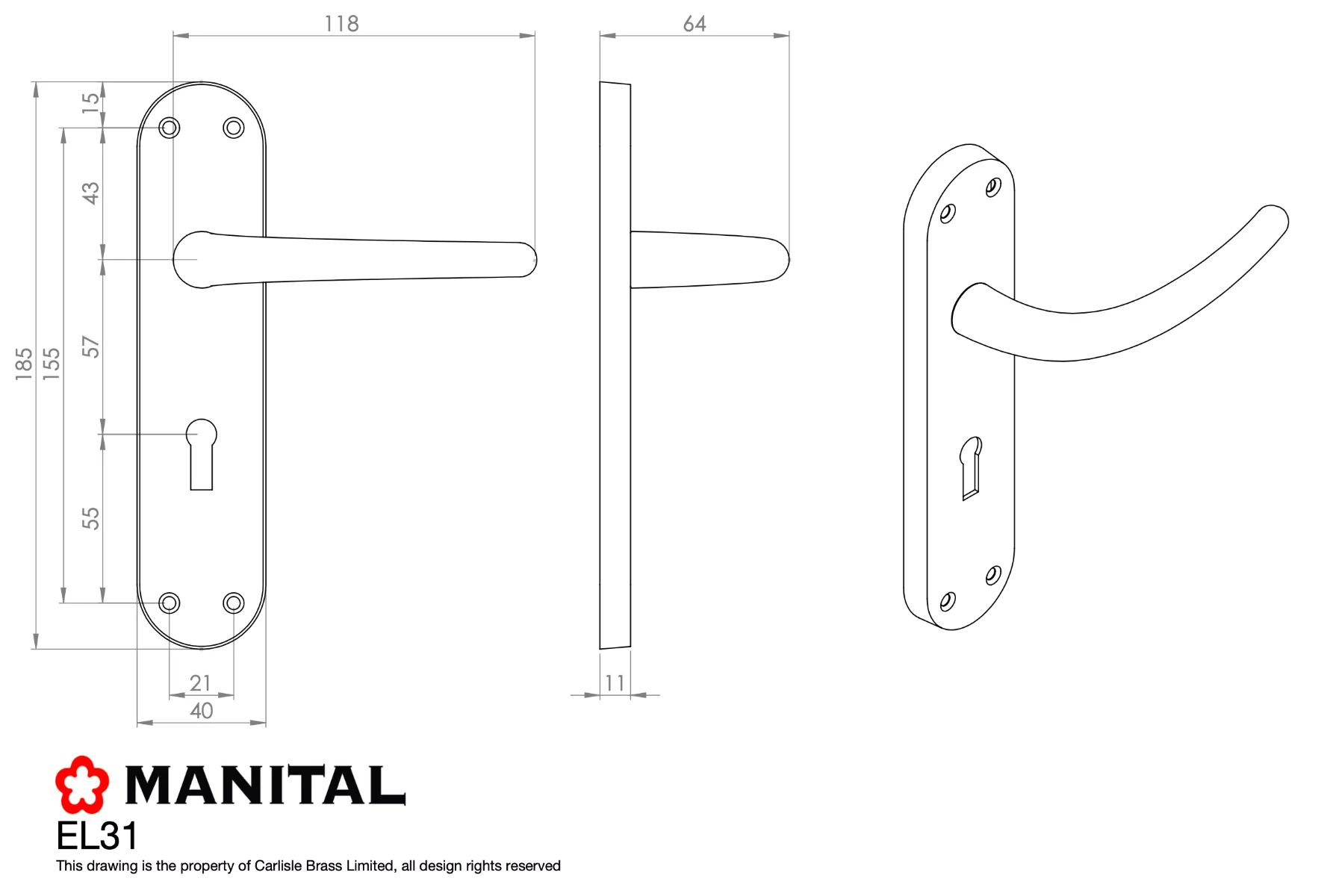 Set Satin Brass Manital Lilla Lever Lock Furniture on backplate | EL31SB