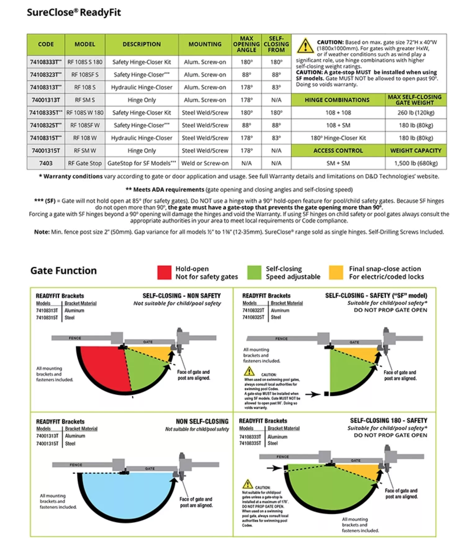 D&D Sureclose Readyfit 108 Screw on HInge | DD-74001313