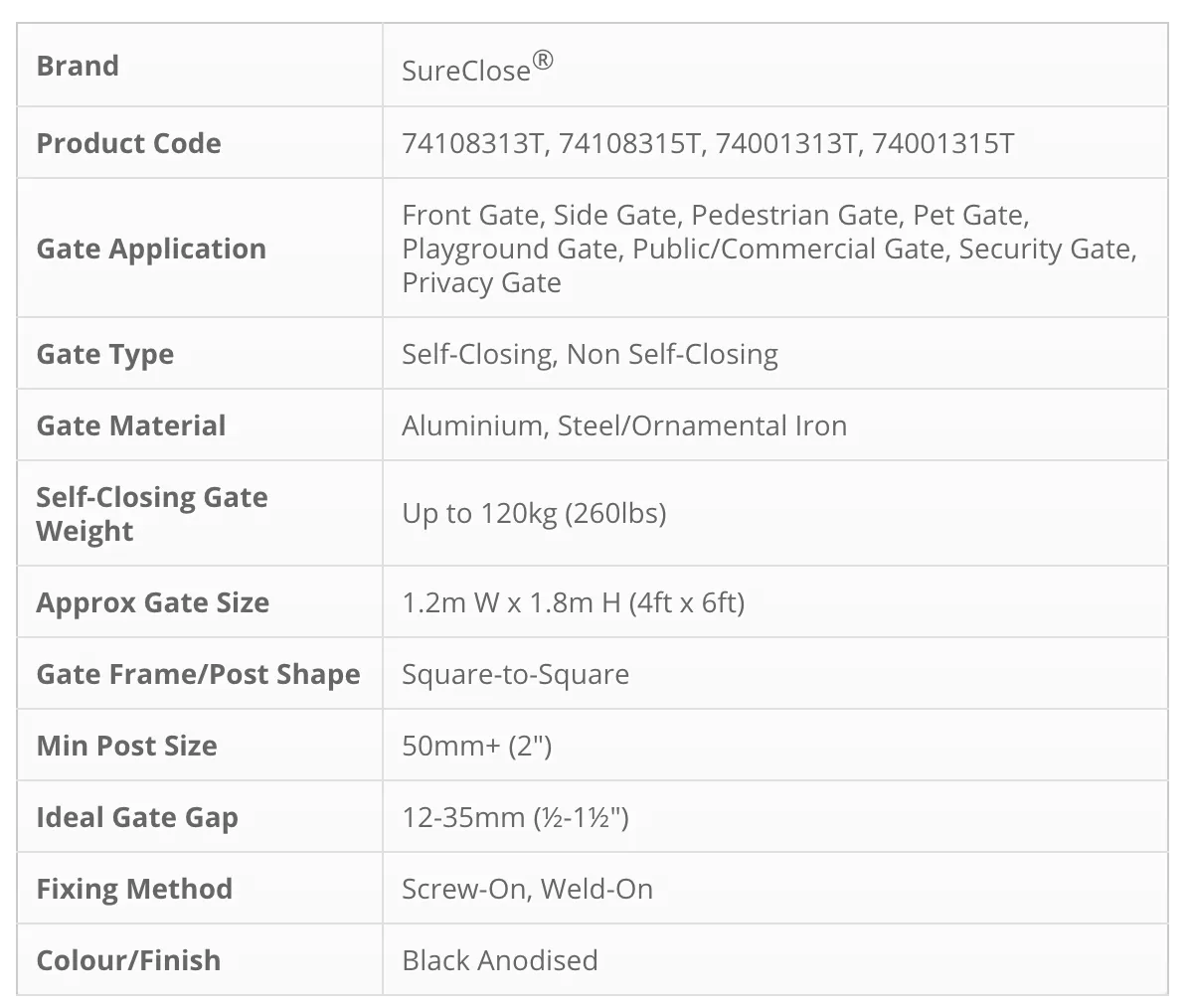 - Gap variance of 12-35mm (½” to 1⅜”)