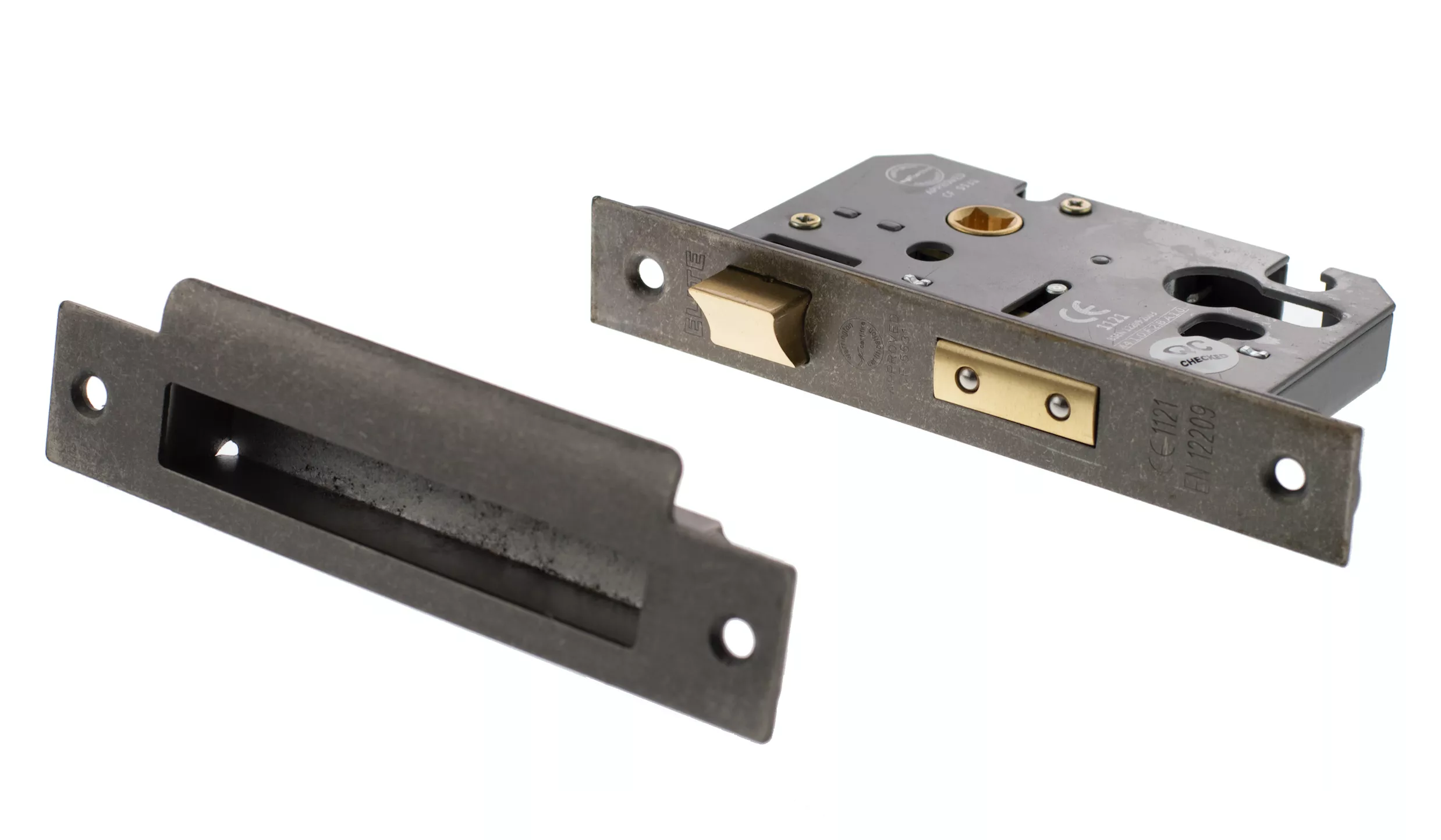 - Complete with matching forend and strike plate