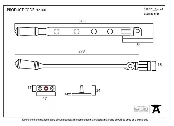 From the Anvil (10″) Black Regency Casement Window Stay | 92106