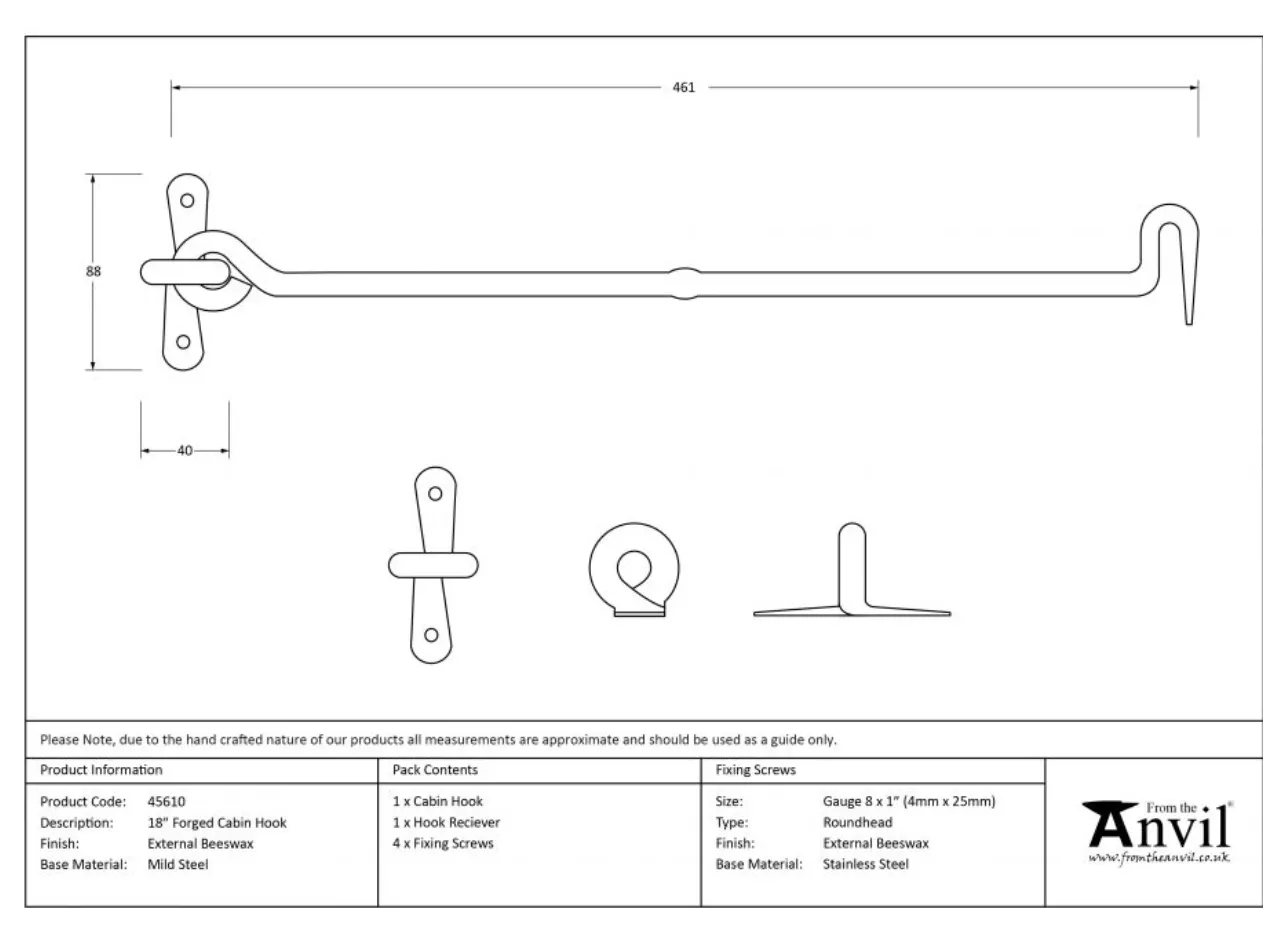 From the Anvil 18″ (461mm) External Beeswax Forged Cabin Hook | 45610