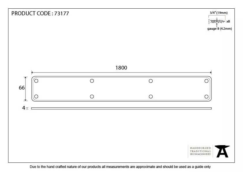 From the Anvil 1800mm x 66mm Pewter Push Plate | 73177