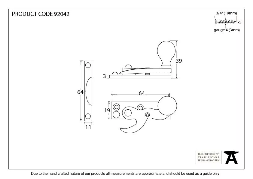 - Fixing plate: 64mm x 19mm