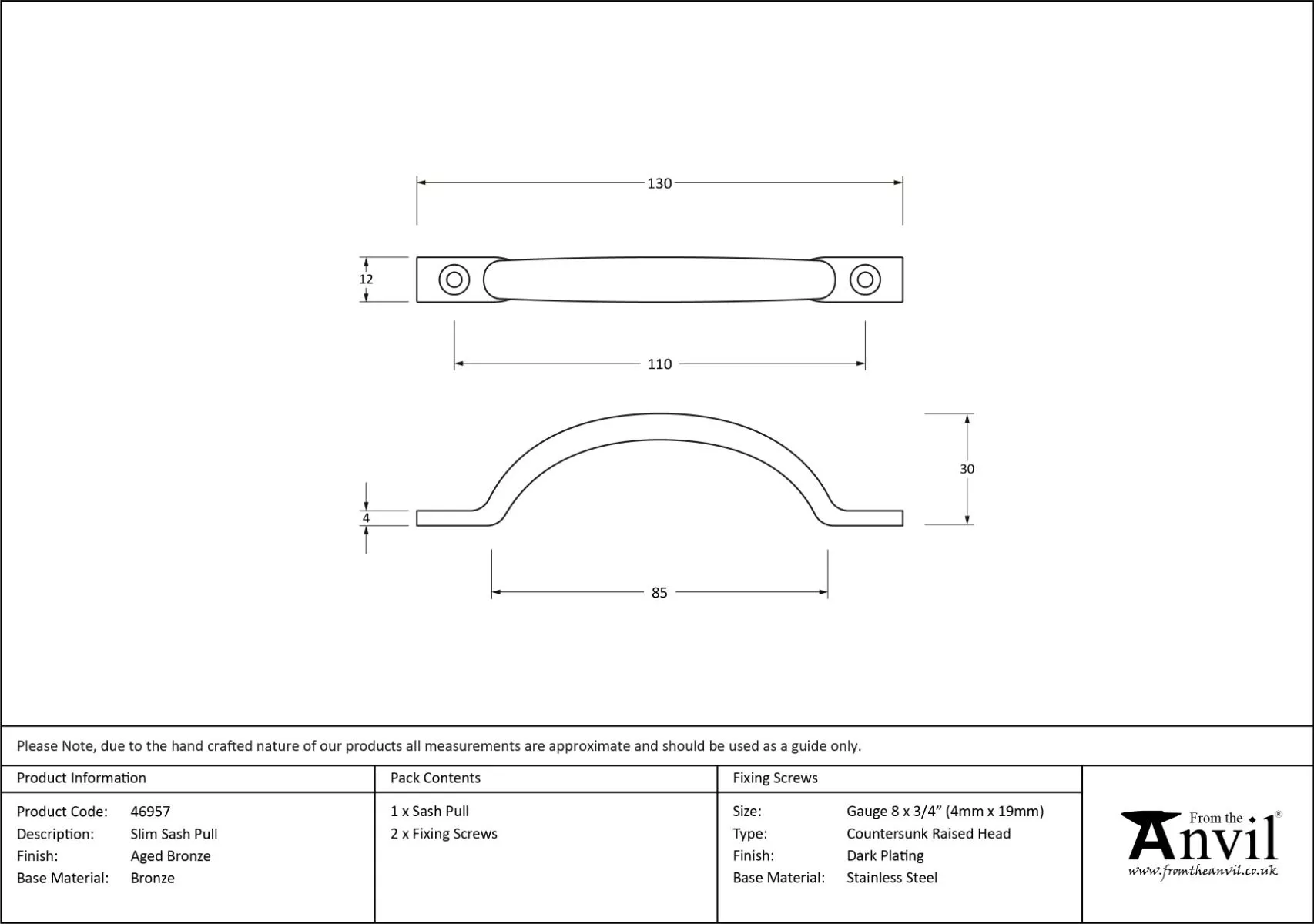 From the Anvil Aged Bronze Slim Sash Pull Handle | 46957