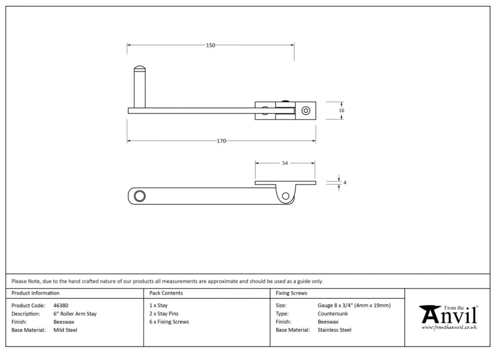 From the Anvil Beeswax 152mm (6″) Window Roller Arm Stay | 46380