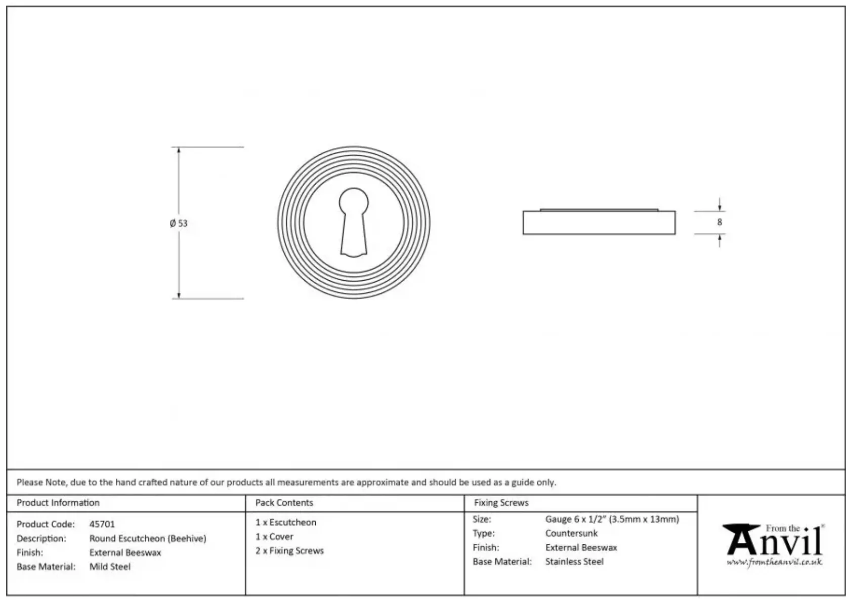 | Brand Info | From the Anvil brand is known for; 90% of their products are hand forged from steel; Unlike the majority of ironmongery, their products are individually heated and shaped by hand on the anvil, giving them extra strength and durability; This process also enables us to achieve unique detail in their designs; ideal for traditional property, historical renovations, cottages. |