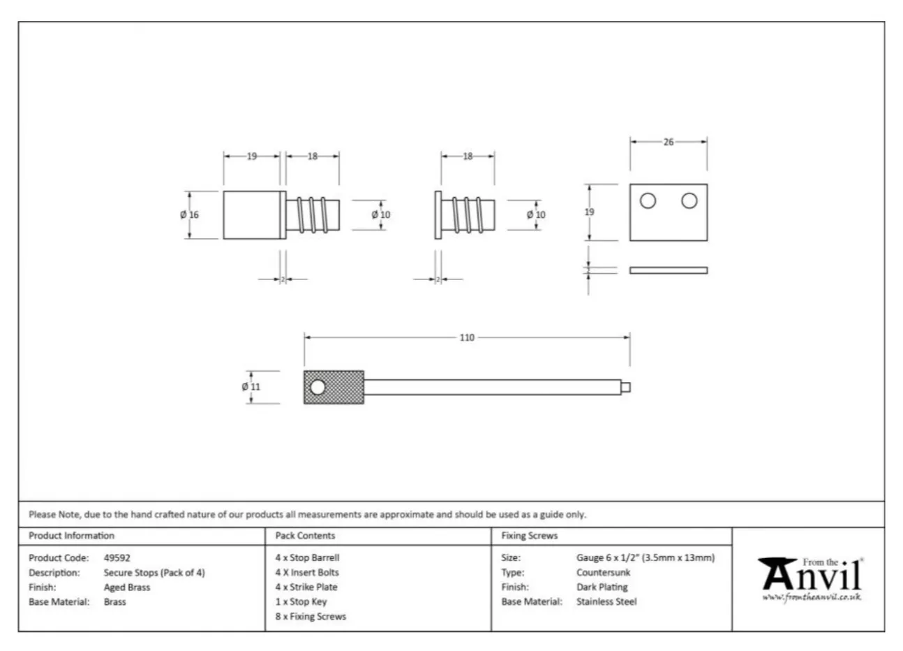 From the Anvil Pack of 4 Aged Brass 19mm Roller Sash Secure Stop | 49592