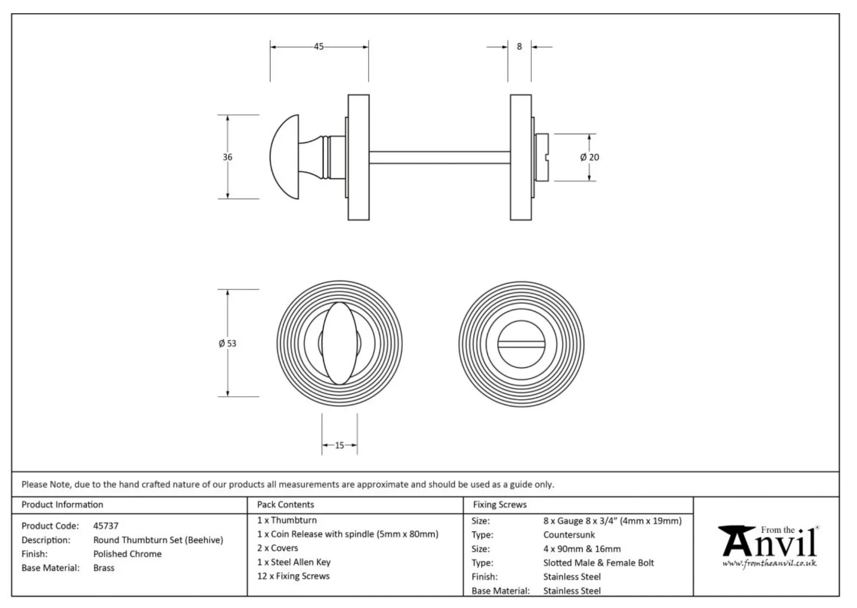 From the Anvil Polished Chrome Bathroom Thumbturn & Snib Release (Beehive) | 45737