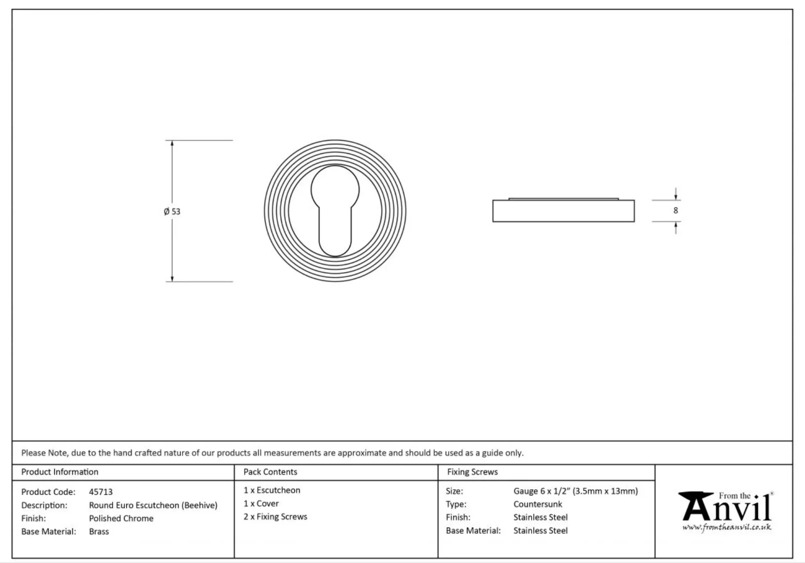 From the Anvil Polished Chrome Beehive Rose Euro Escutcheon | 45713