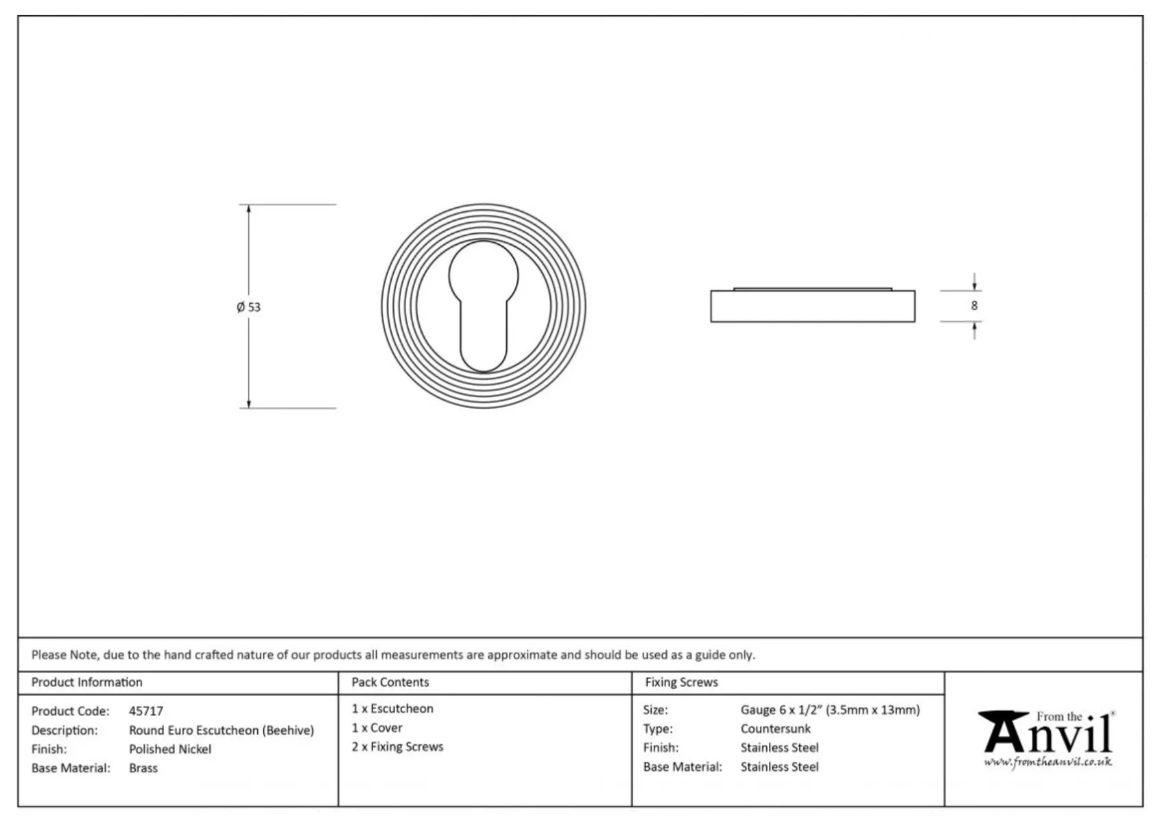 | Brand Info | From the Anvil brand is known for; 90% of their products are hand forged from steel; Unlike the majority of ironmongery, their products are individually heated and shaped by hand on the anvil, giving them extra strength and durability; This process also enables us to achieve unique detail in their designs; ideal for traditional property, historical renovations, cottages. |