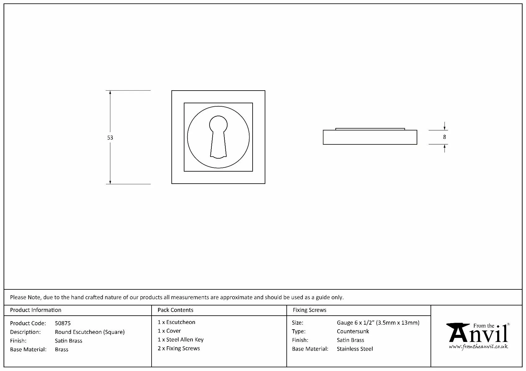From the Anvil Satin Brass Round Escutcheon (Square) | 50875