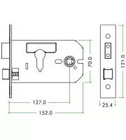 152mm Satin Stainless Steel 3 Lever Horizontal Lock ZUKH3152SS