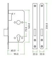 Satin Stainless Steel DIN Standard 60mm Single Throw Euro Sashlock Case | ZDL7260STSS