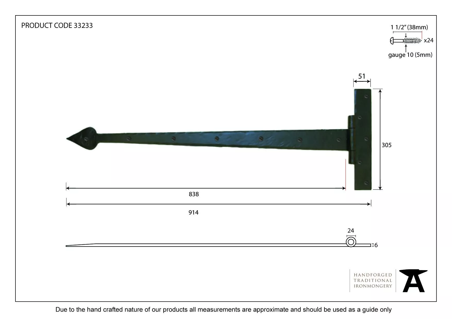 - Fixing Plate : 305mm x 51mm