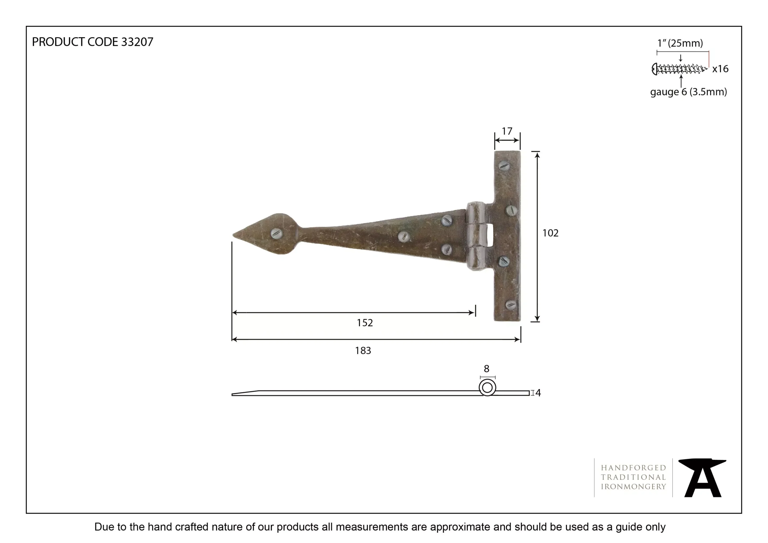 Pair From the Anvil Beeswax 6″ (183mm) Arrow Head T Hinge | 33207