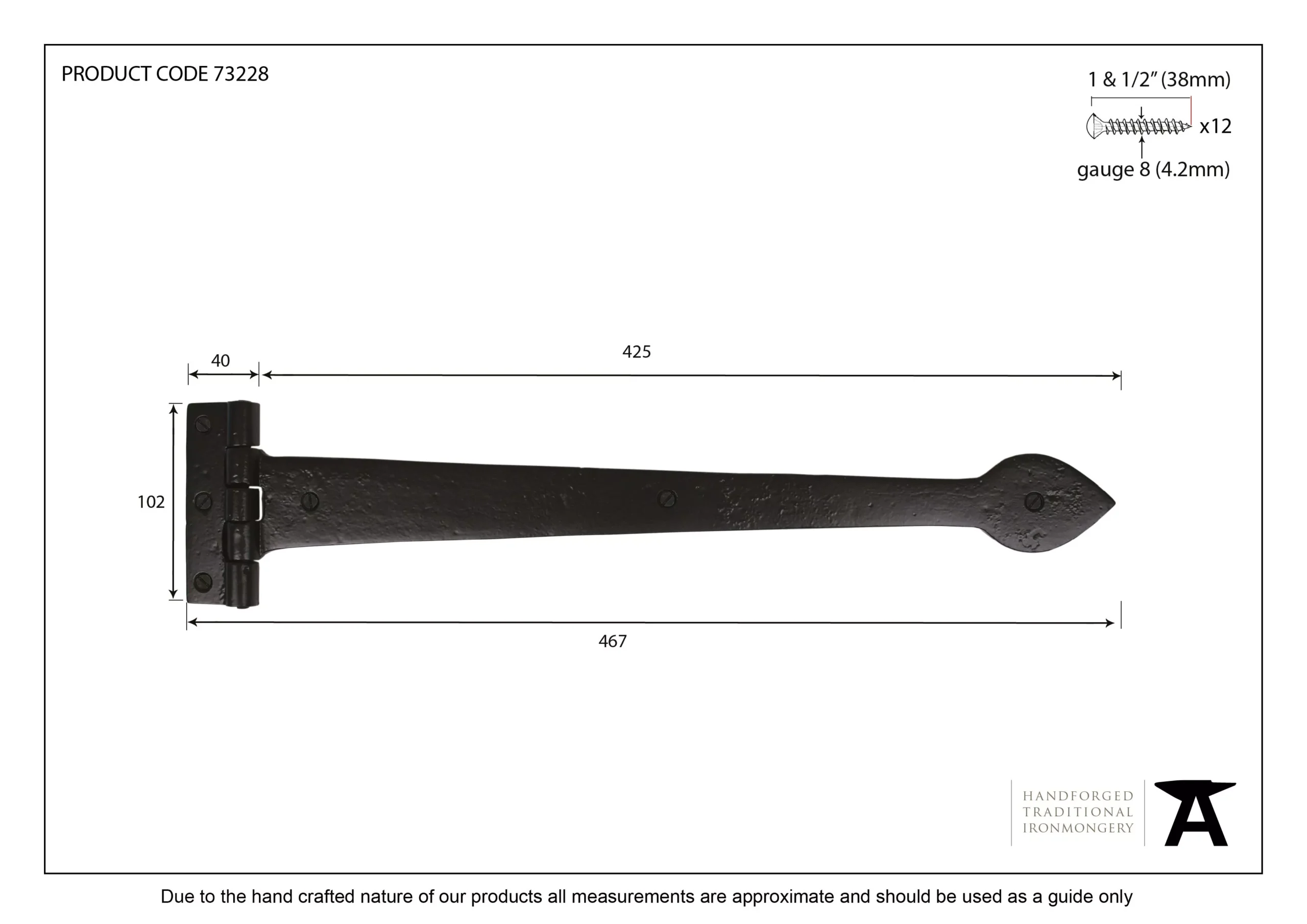 Pair From the Anvil Black Smooth 18″ (467mm) Cast T Hinge | 73228