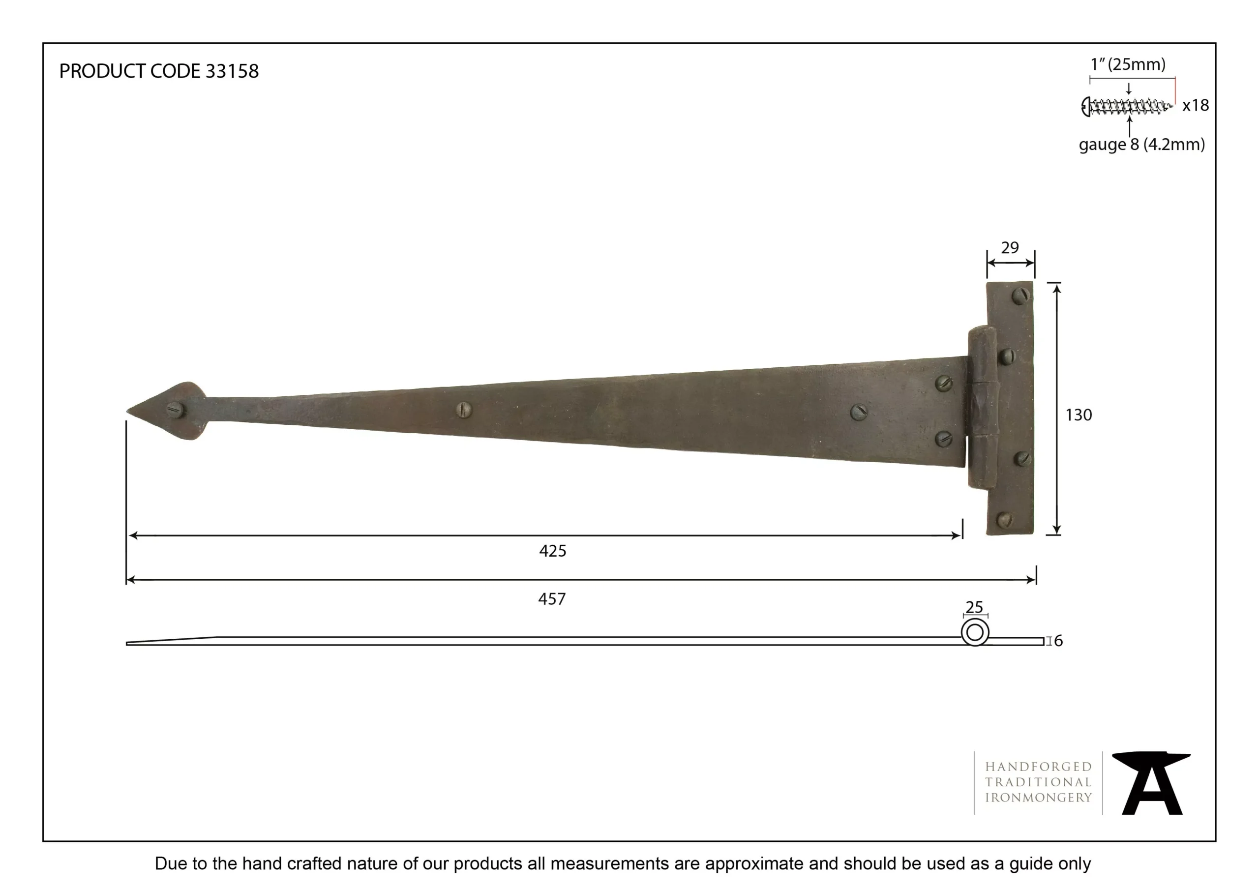 Pair From the Anvil External Beeswax 18″ (457mm) Arrow Head T Hinge | 91476