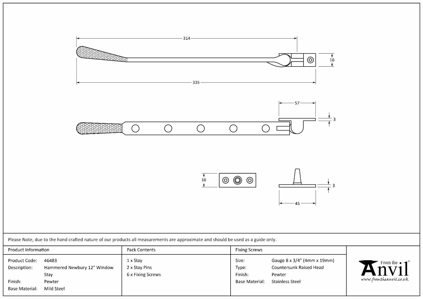 Anvil Pewter 12″ Hammered Newbury Stay | 46483