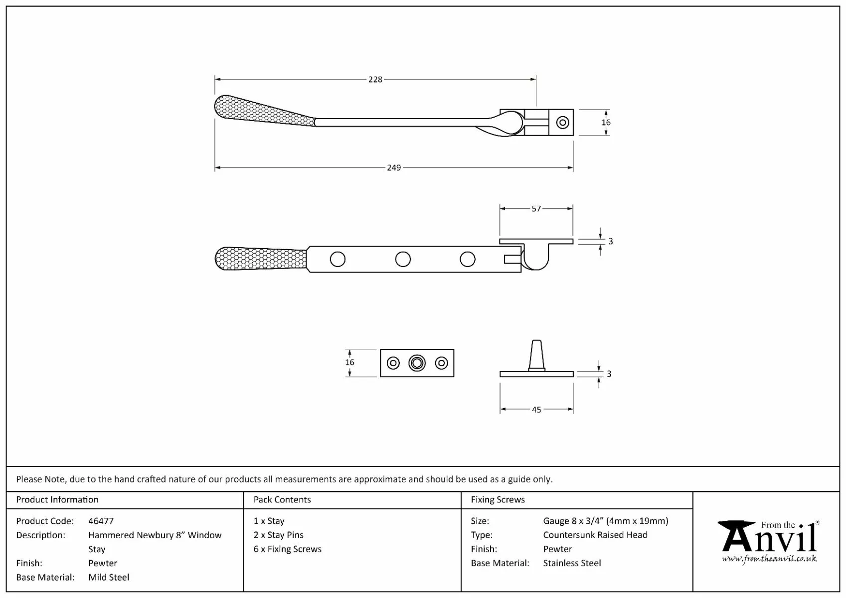 Anvil Pewter 8″ Hammered Newbury Stay | 46477