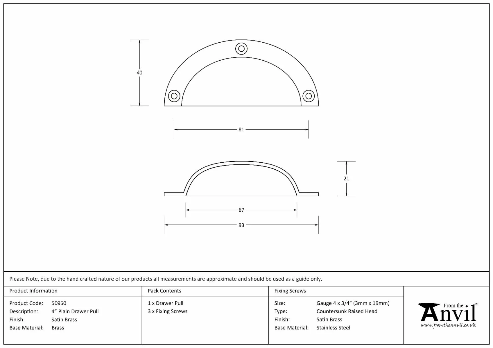 - Manufactured by From the Anvil