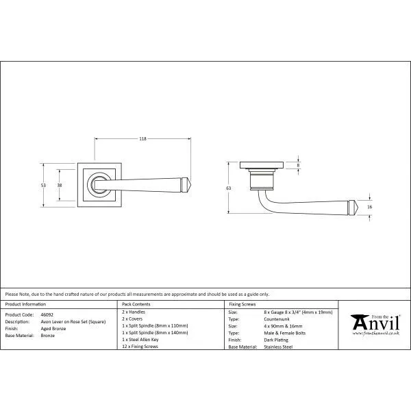 Set Aged Bronze Avon Round Lever on Square rose | 46092