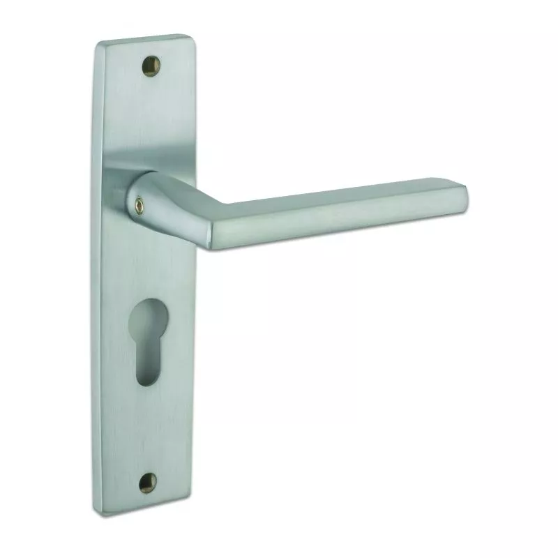 Set Satin Chrome Euro Profile Lever Lock on backplate