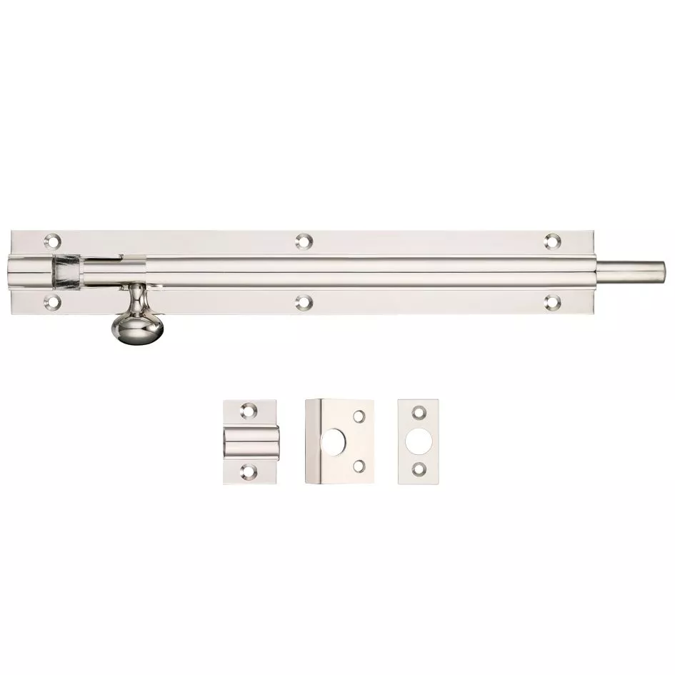 200mm x 30mm Fulton & Bray Polished Nickel Architectural Barrel Bolt